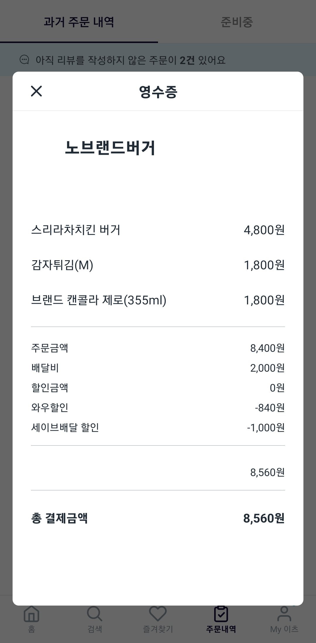 주문할때도 10% 할인받고 배달도 1천원 할인.. 대박.. 요즘 배달료도 비싸고 최소 주문금액도 높아서 집에서 혼자 시켜먹기 부담스러운데 쿠팡이츠 넘좋네요.