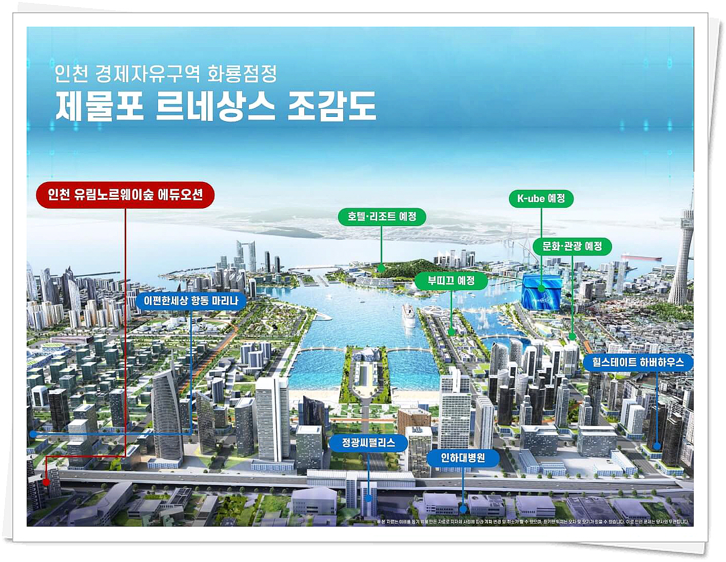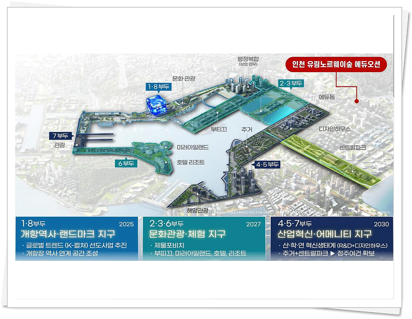 약 2030년까지 개발이 예정되어 있는데요, 글로벌 트랜드 선도사업 추진지구, 제물포비치, 미러아일랜드, 호텔, 리조트 등 문화관광 체험지구, 산업혁신과 어메니티지구 등 지금과는 완전 달라질 새로운 제물포가 될 것입니다. 인천 유림노르웨이숲 에듀오션은 제물포 르네상스 개발의 바로 옆으로 개발 호재를 전부 누리는 곳입니다.