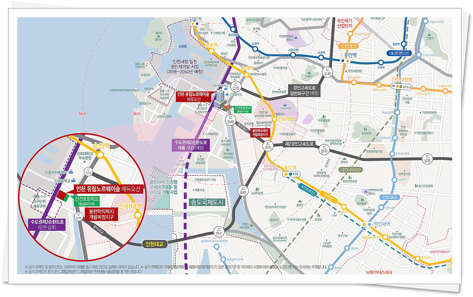 이미 분양 당시에 분양이 완료가 되었지만, 이번에 계약 해지분 / 회사보유분을 분양하는 물량으로 4년 전 분양가 그대로 분양하기 때문에, 주변 신규 분양하는 단지보다 분양가가 매우 저렴하게 책정되어 있습니다. 인천 유림노르웨이숲 에듀오션 단지가 위치하는 곳은 그야말로 개발의 중심지 인데요, 숭의역과 인천IC, 능해IC가 인접한 곳입니다.