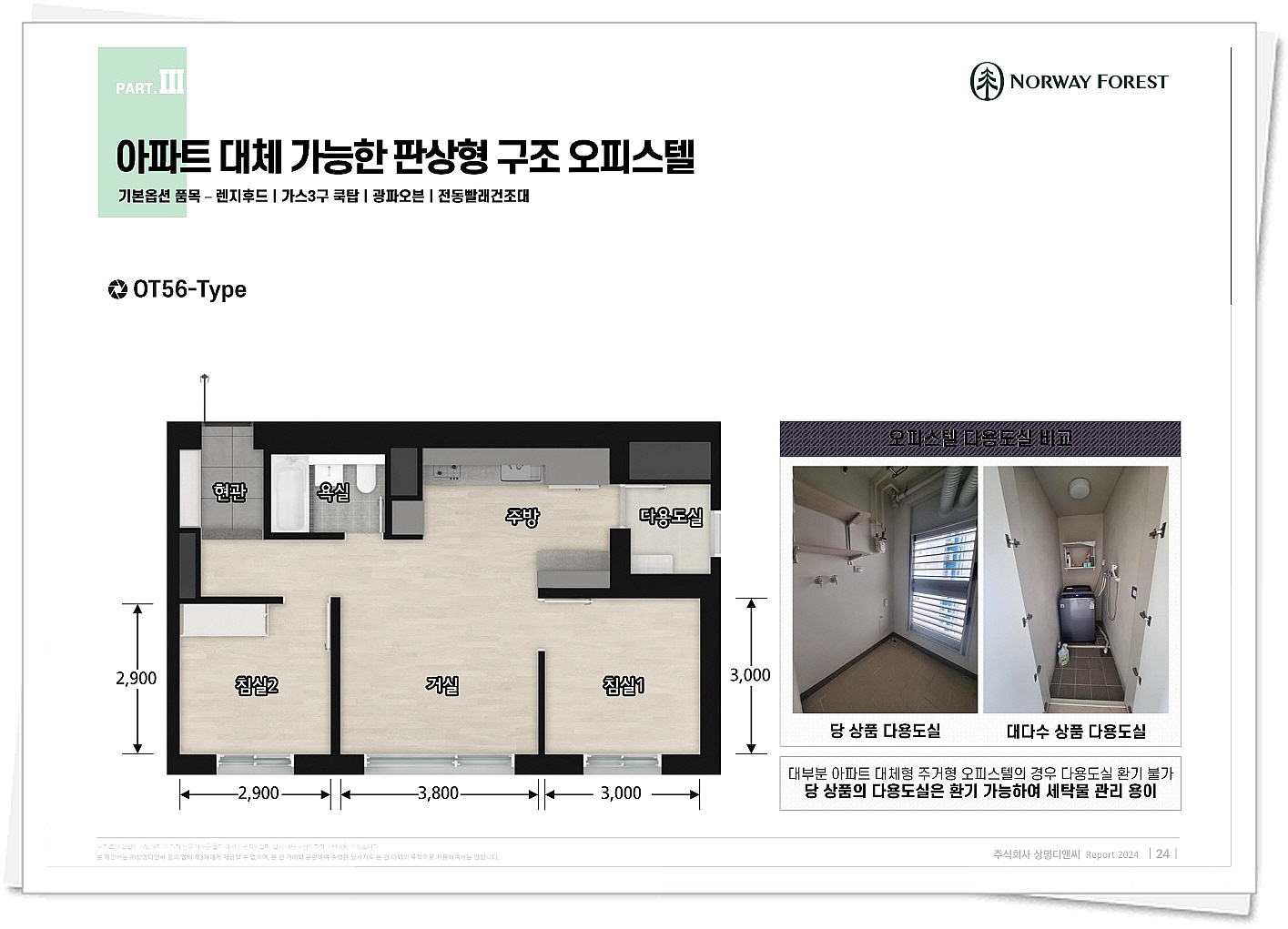 단지에 방문하시면 직접 견본주택을 관람할 수 있는데요, 미리 구조를 알아보겠습니다. 오피스텔의 경우 전용면적 56제곱미터 타입으로 2개의 방과 거실, 주방이 있는 구조 입니다. 특히 다용도실이 환기가 편리한 구조로 타 오피스텔의 다용도 실과 다르게 더욱 다양한 용도로 이용할 수 있습니다.
