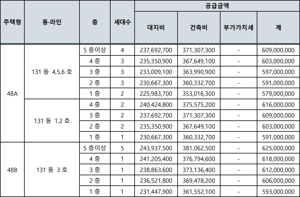 매교역 팰루시드 분양가는 위 표와 같습니다. 전용면적 48제곱미터의 경우 5억원 후반 ~ 6억원 초반으로 분양가가 책정되어 있으며, 전용면적 59제곱미터의 경우 6억원 후반 ~ 7억원 초반으로 분양가가 책정되어 있습니다.