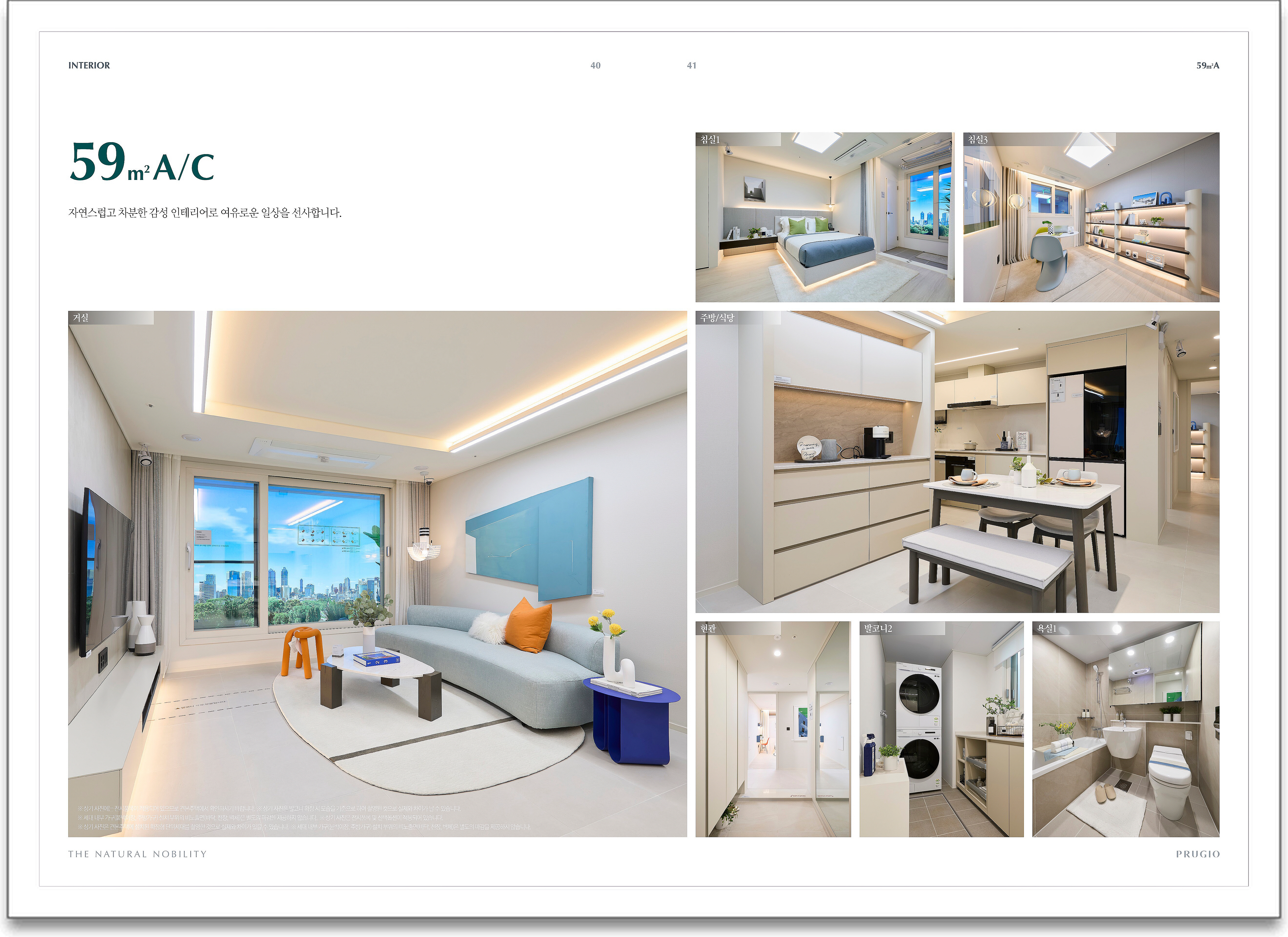 전용면적 59㎡ 25평형 세대는 3개의 방과 거실로 구성되는데요, 넓은 안방에는 드레스룸과 별도의 욕실도 설치가 되어 있습니다. 송내역 푸르지오 센트비엔 모델하우스에 오시면 세대 내부를 관람할 수 있습니다.