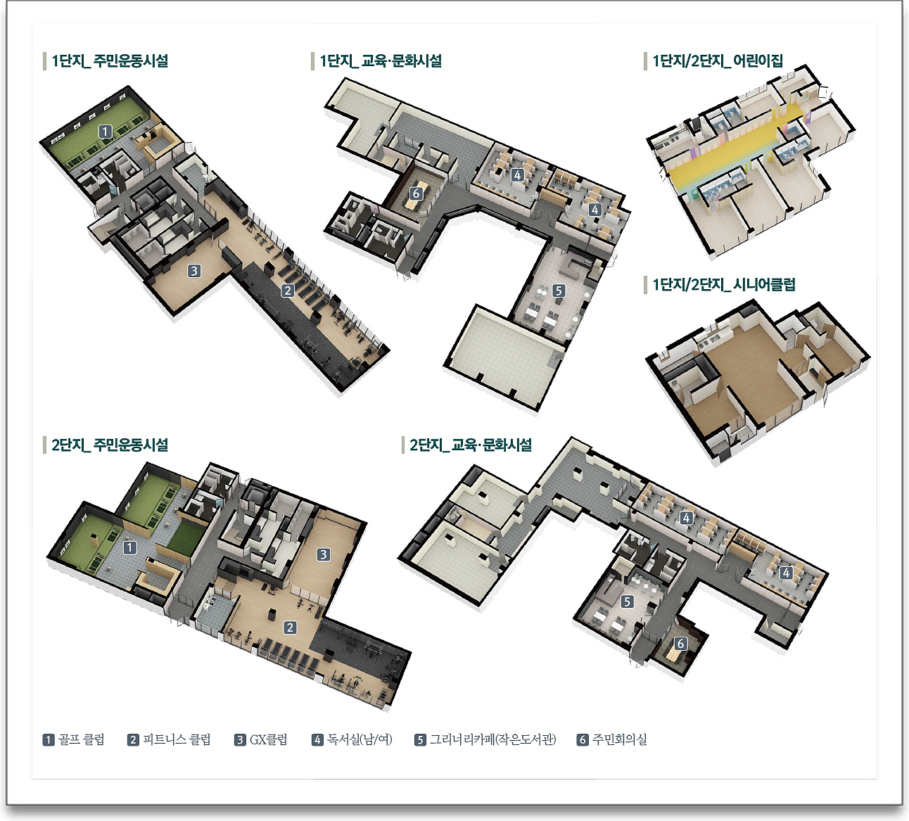 뿐만아니라 피트니스 클럽, 골프 클럽, GX클럽, 독서실(남/여), 그리너리카페(작은도서관), 주민회의실, 시니어클럽 등 대단지 아파트에 어울리는 다양한 커뮤니티시설도 갖춰져 입주민 분들이 사용할 수 있습니다.