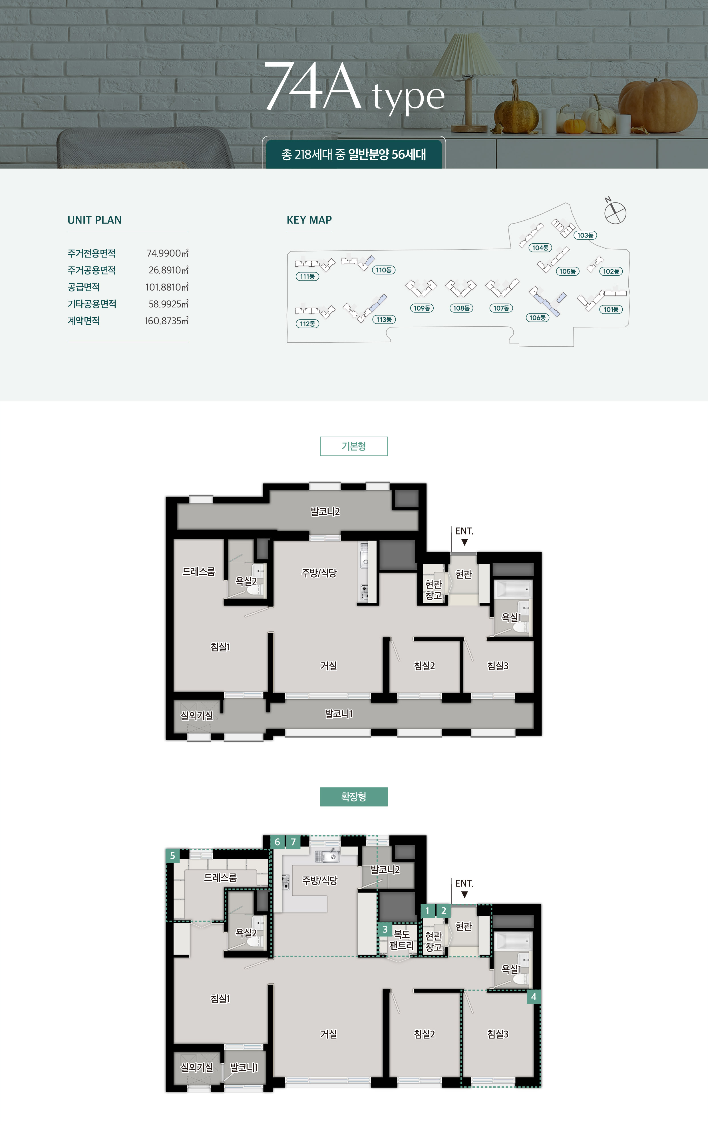 세대 타입은 전용면적 37제곱미터 ~ 111제곱미터 까지로 12평대, 20평대, 25평대, 30평대, 34평대 등 다양한 면적으로 구성됩니다.