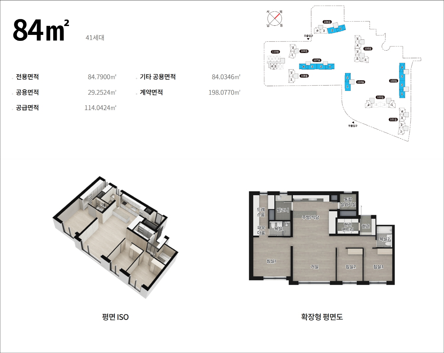 세대의 구성은 중·소형 평면으로 구성되는데요, 1인 가구가 생활하기 적합한 소형 평형대의 아파트 평형대도 있어서 1인가구 증가 시대에 맞춘 공간을 제공합니다.