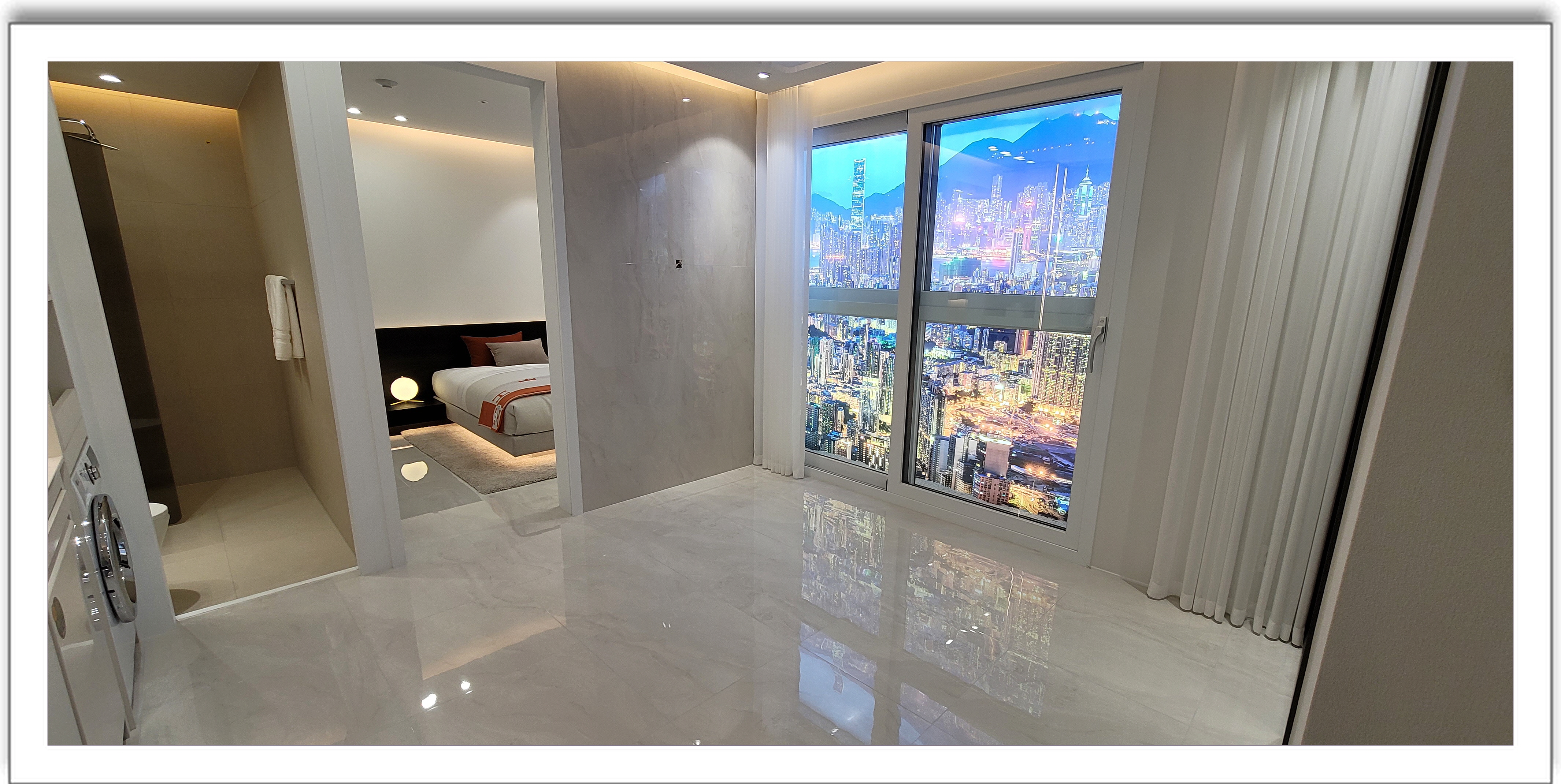 2개의 룸은 이렇게 슬라이딩 도어를 활용해서 사용할 수 있습니다. 정말로 고급스러운 마감과 2개의 방이 있는 구조로 1인가구는 물론이고 신혼부부 분들도 거주하기에 정말 좋은 크기의 오피스텔 입니다.