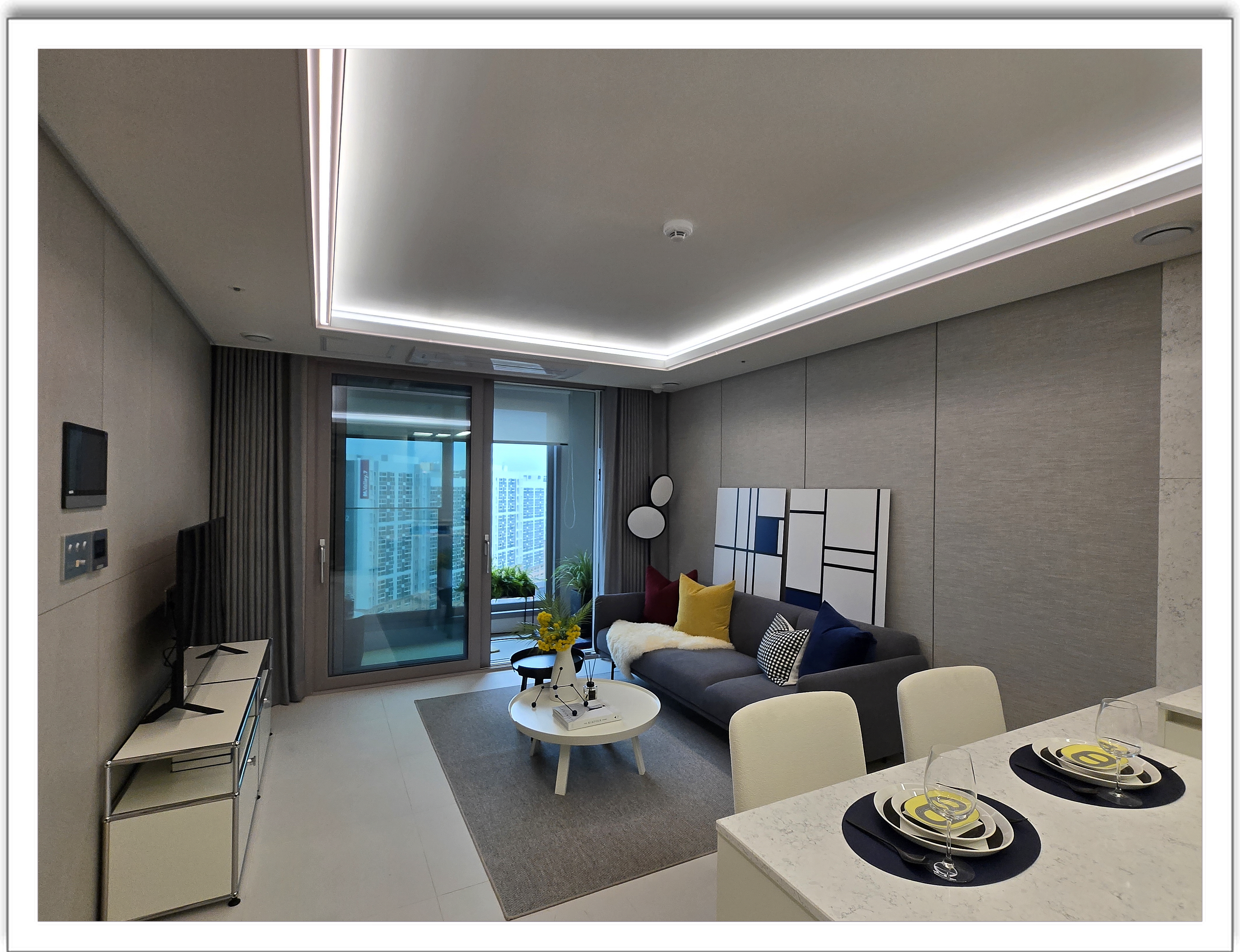 세대 내부는 이태리, 독일 등 뛰어는 품질의 수입 자재로 타일, 마루판, 주방가구, 조명, 주방 및 세면수전 등이 적용되어 있습니다. 세대 내부는 정말 고급스러운 느낌으로 품격있는 공간을 자랑합니다.
