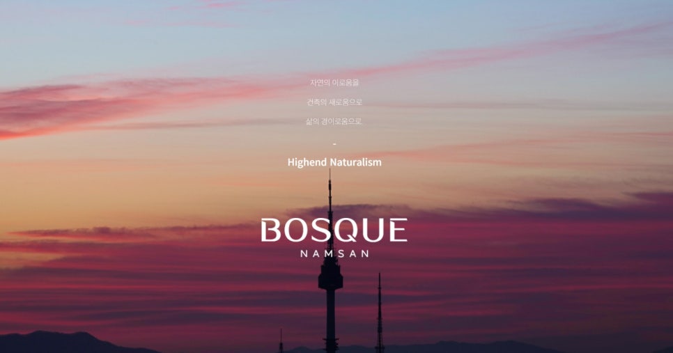 「BOSQUE NAMSAN」 – 이태원 최상급 주거공간의 탄생 남산 자락과 그랜드 하얏트 서울 사이, 서울에서도 손꼽히는 고급 주택 밀집지역에 차원이 다른 프리미엄 주거공간이 들어섭니다. 바로, 보스크 남산(BOSQUE NAMSAN) 입니다.