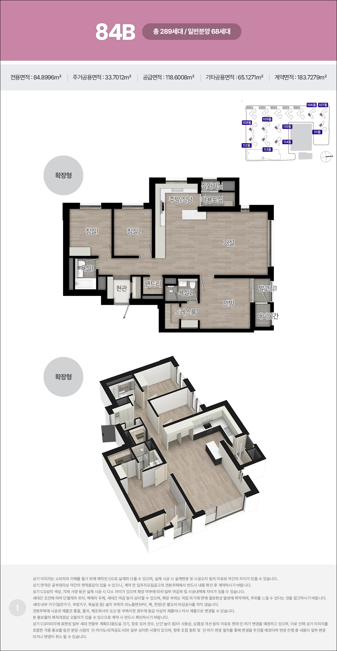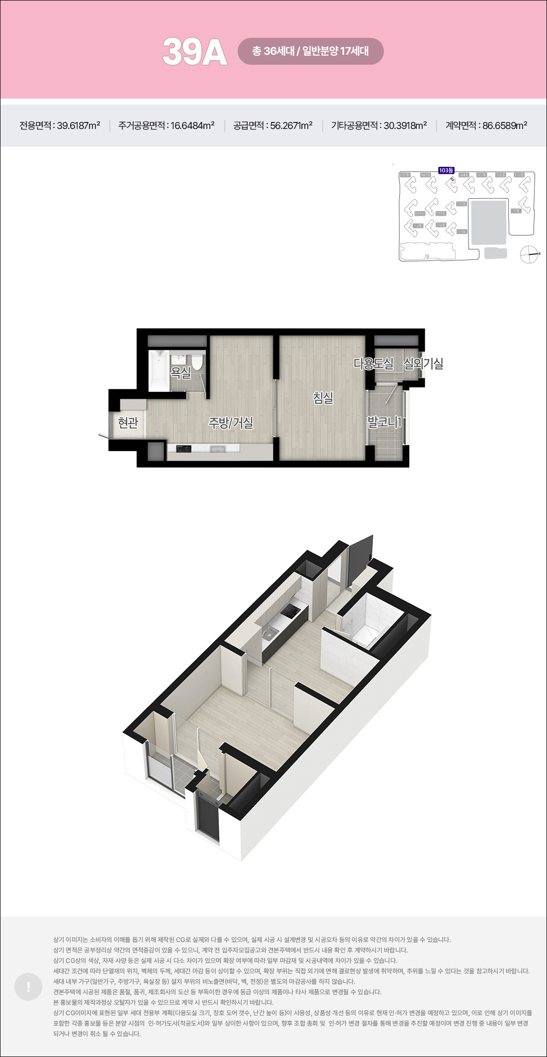세대는 소형 타입부터 중대형 타입까지 다양한 가족구성원이 거주하기에 완벽한 구조를 갖추고 있는데요, 분리형 구조부터 1.5룸 구조의 39제곱미터는 1인가구 최적화된 타입 입니다.