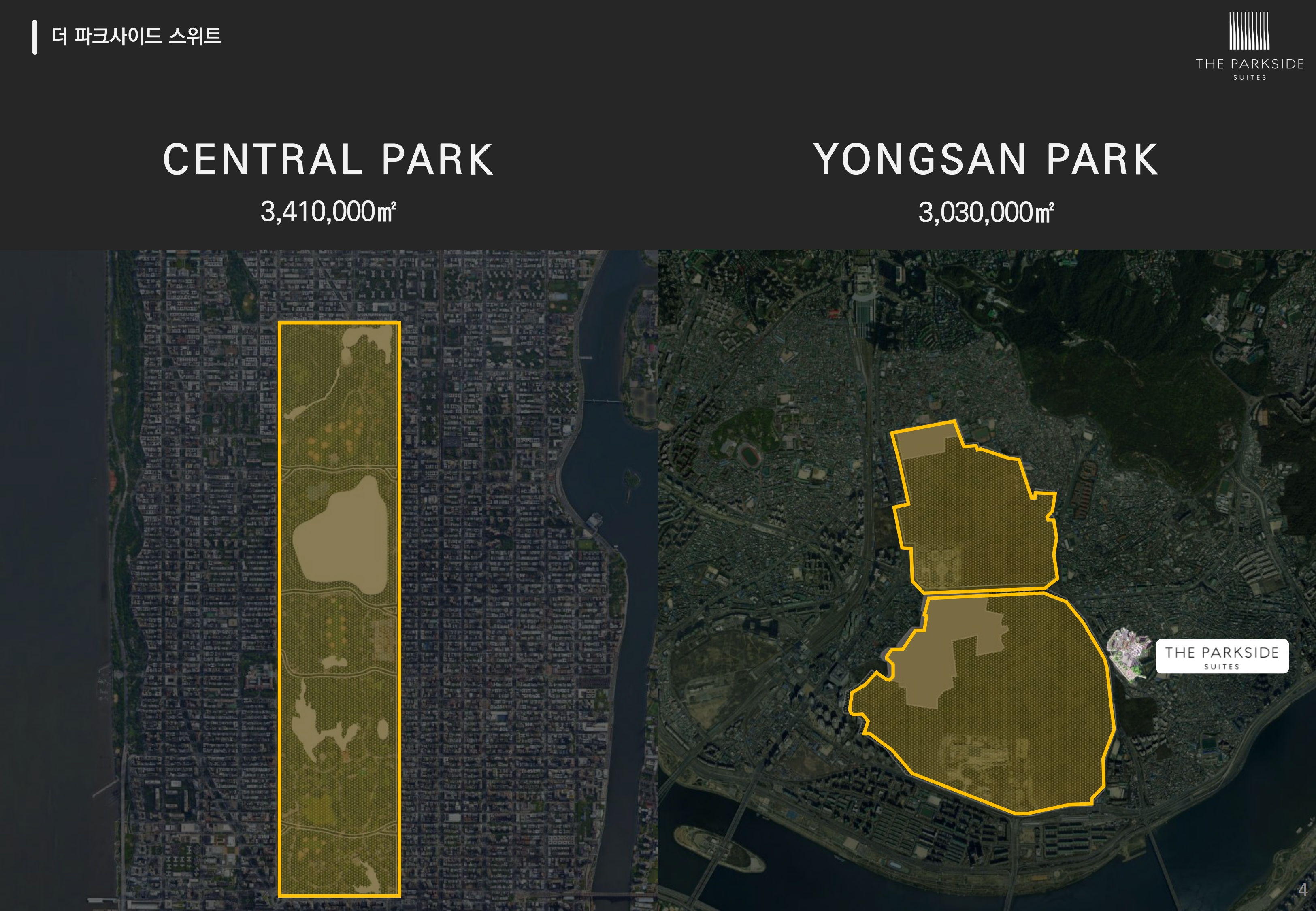 더파크사이드 서울이 누리는 용산공원은 면적이 약 3,030,000㎡로 뉴욕의 센트럴파크와 비슷한 초대형 공원이 조성되어 있습니다. 용산공원을 바로 앞에서 누리는 단 하나의 초고급 주거공간 더파크사이드 스위트 서울 입니다.