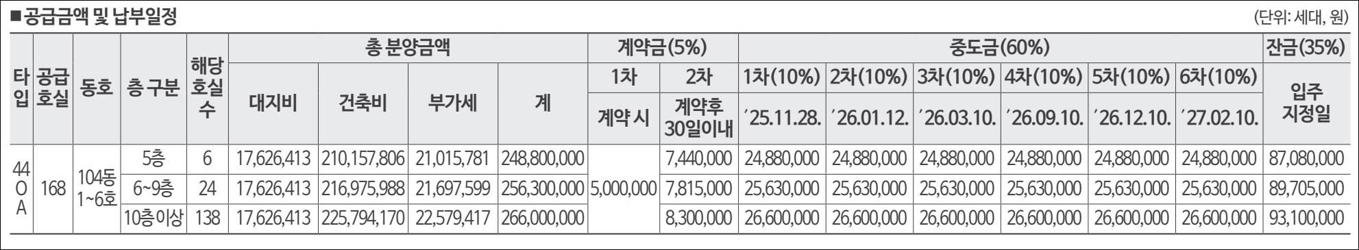 44OA타입 248,800,000원 ~ 266,000,000원