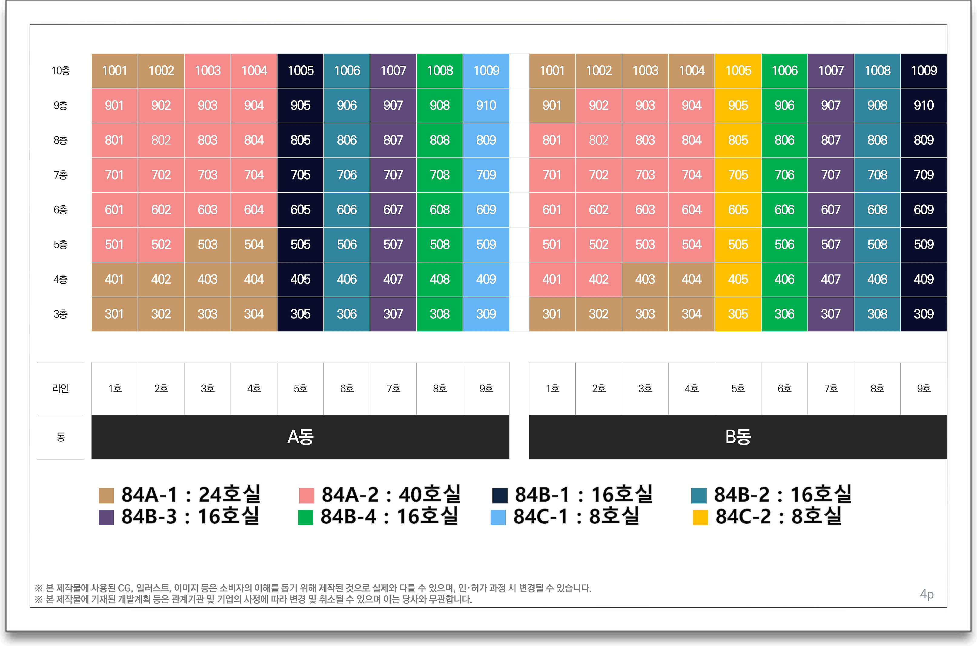 단지는 총 2개의 동으로 A동과 B동으로 구성됩니다. 오피스텔은 3층부터 10층에 위치하는데요, 근린생활시설 상가와 오피스텔 출입구가 분리되어 입주민과 방문객의 동선이 겹치지 않도록 배치됩니다.