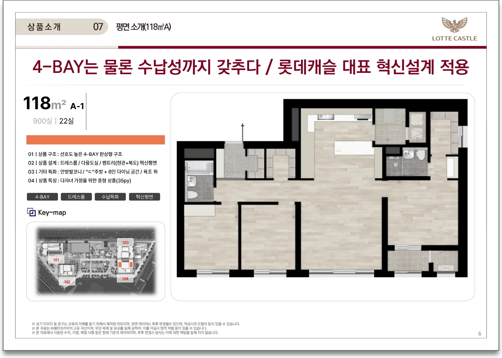 119타입은 A타입 172실과 B타입 86실로 4베이 구조 입니다. 현관과 거실에 팬트리 수납공간이 있으며, 더욱 넓은 실내 공간과 대형 드레스룸이 위치합니다. 평촌 롯데캐슬 르씨엘 다양한 타입 세대 내부 관람은 모델하우스에서 직접 유니트 관람을 통해서 확인하실 수 있습니다. 아래 대표번호로 연락주시면 분양가, 청약, 방문예약을 안내해드립니다.