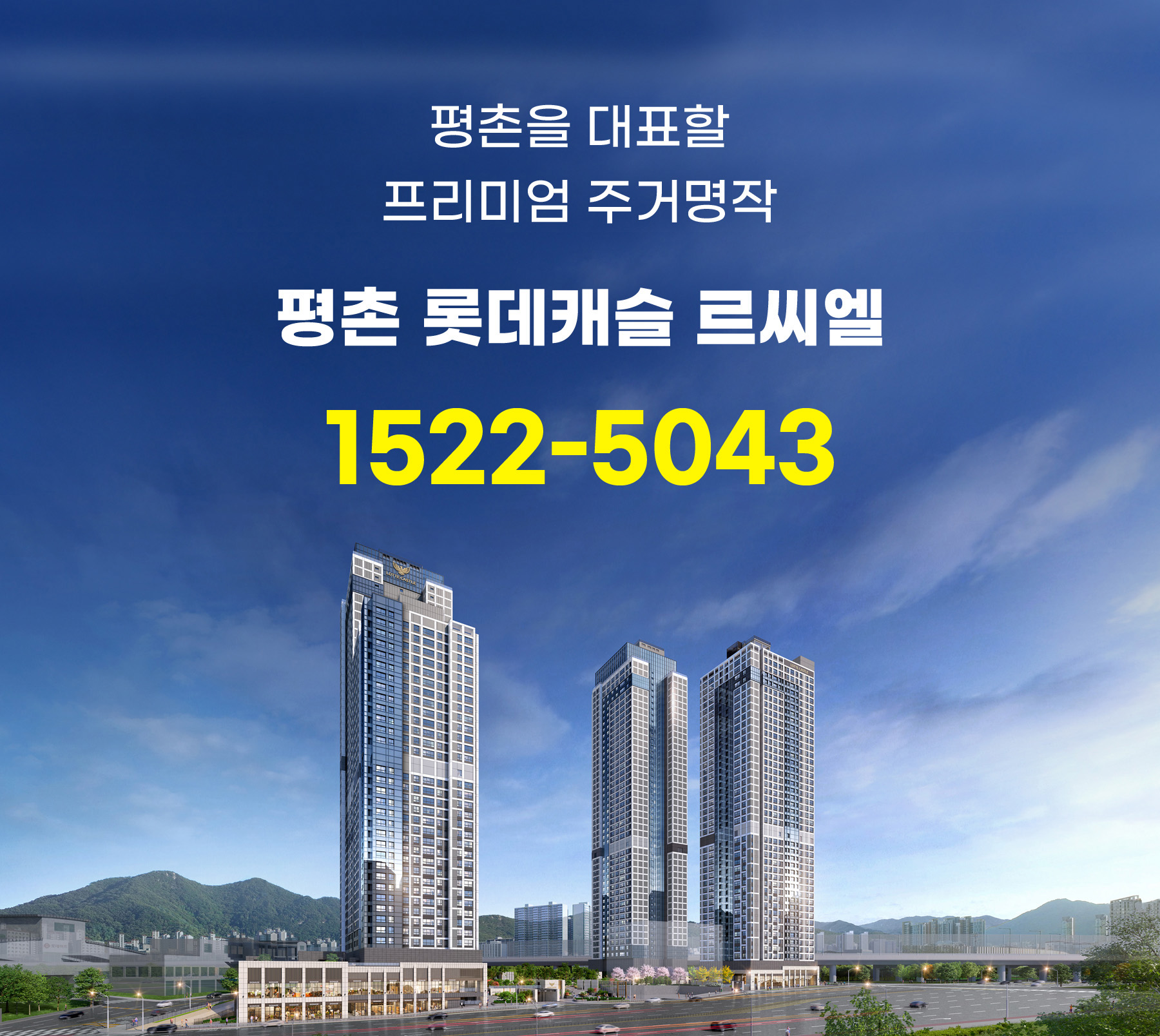 안양 평촌에 새롭게 들어서는 롯데건설의 프리미엄 주거명작 평촌 롯데캐슬 르씨엘이 10월 모델하우스 오픈을 시작으로 청약과 분양을 진행합니다. 현재 모델하우스 방문예약, 사전 청약 의향서 접수중으로 위 대표번호로 연락주시면 안내해드립니다.